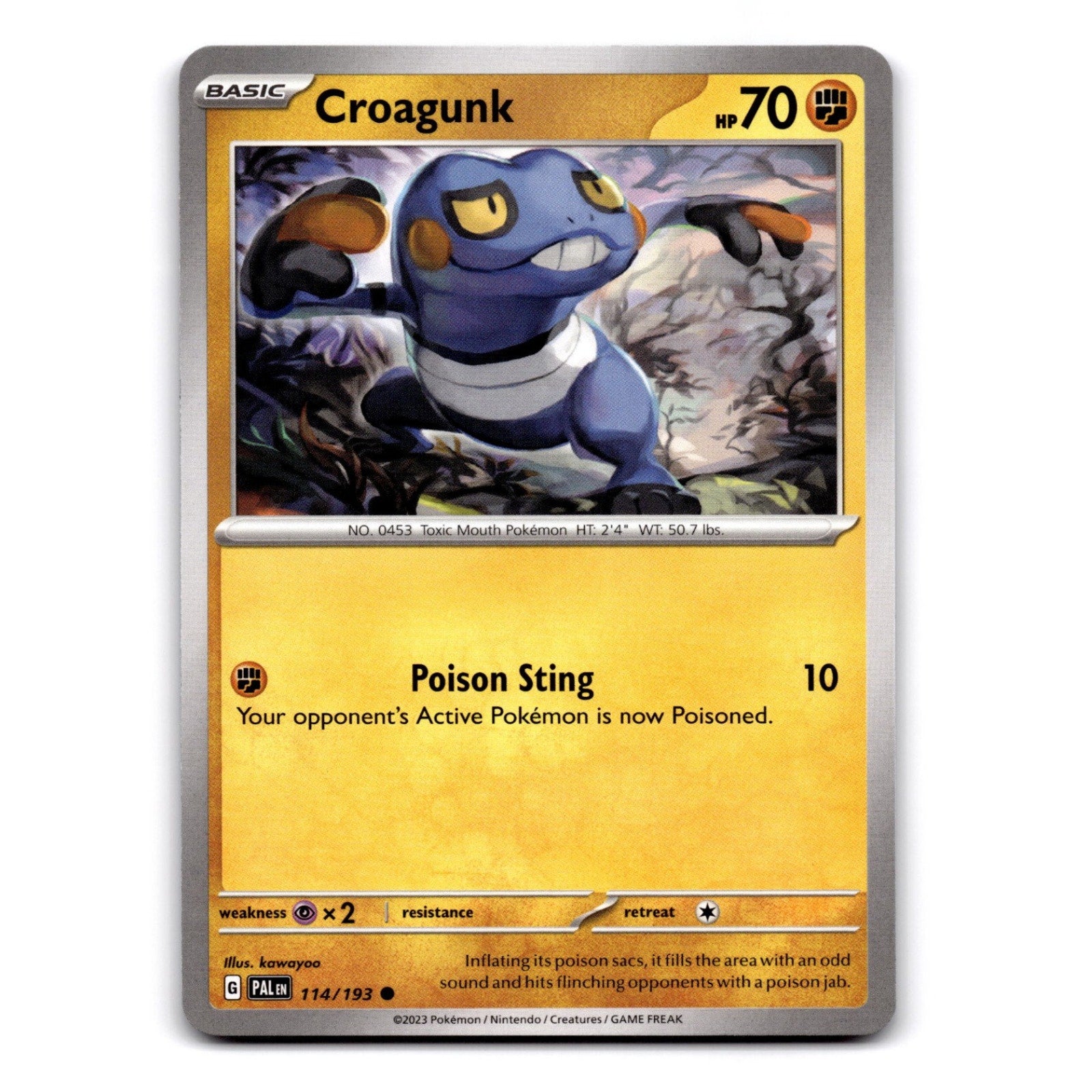 Croagunk Common from SV02: Paldea Evolved, card number 114/193 in NM condition.This listing was created with TCG Automate image recognition... Read more