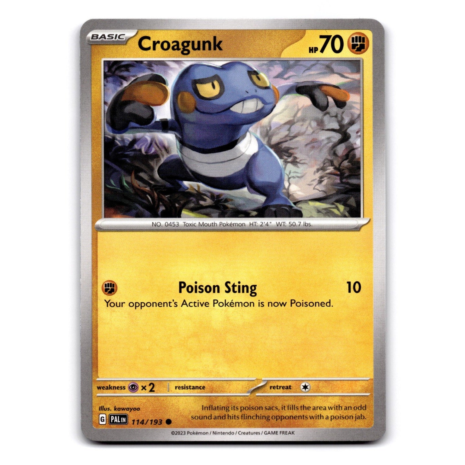 Croagunk Common from SV02: Paldea Evolved, card number 114/193 in NM condition.This listing was created with TCG Automate image recognition... Read more