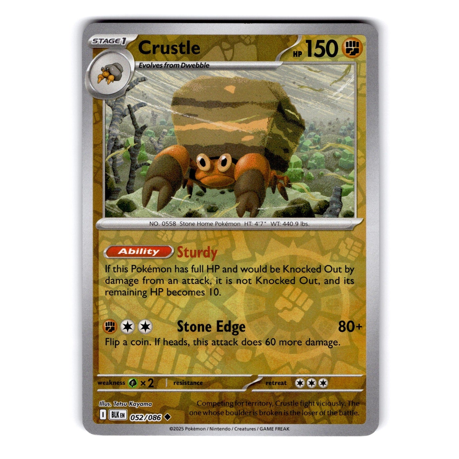 Crustle Uncommon from SV: Black Bolt, card number 052/086 in NM condition.This listing was created with TCG Automate image recognition... Read more