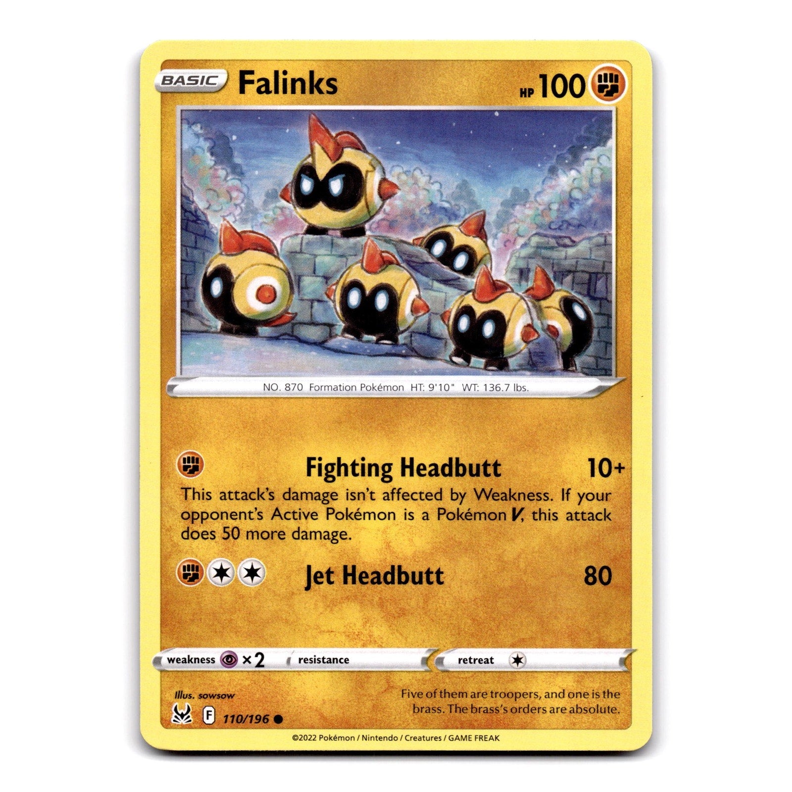 Falinks Common from SWSH11: Lost Origin, card number 110/196 in NM condition.