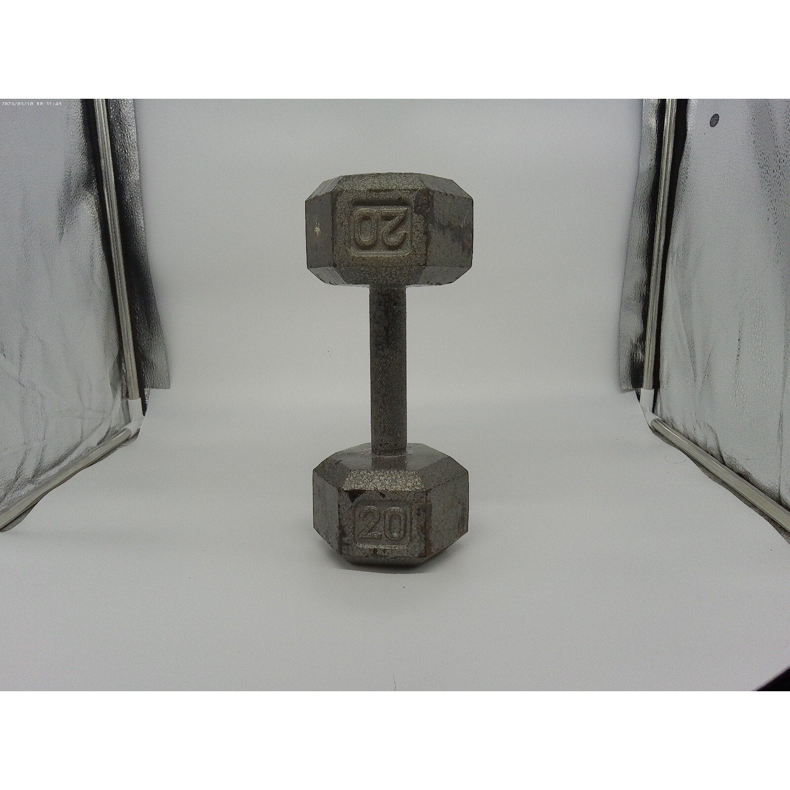 This vintage 20lbs cast iron dumbbell has a unique hex shape design, making it a great addition to any weight... Read more